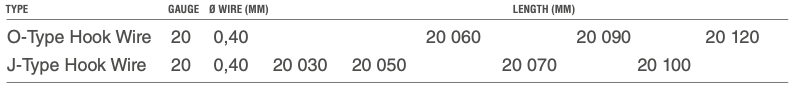 - J-Type and O-Type hook wire.